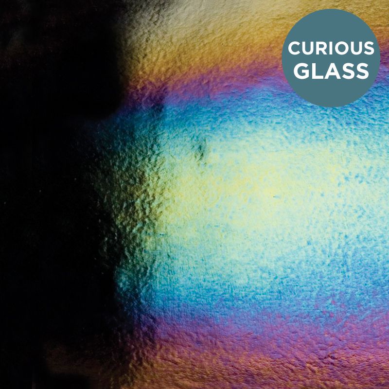 Bullseye Curious Glass: 2mm Rainbow Irid on thin clear 1101.51