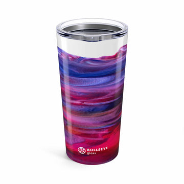 Stainless steel tumbler with vacuum insulation and see-through lid.